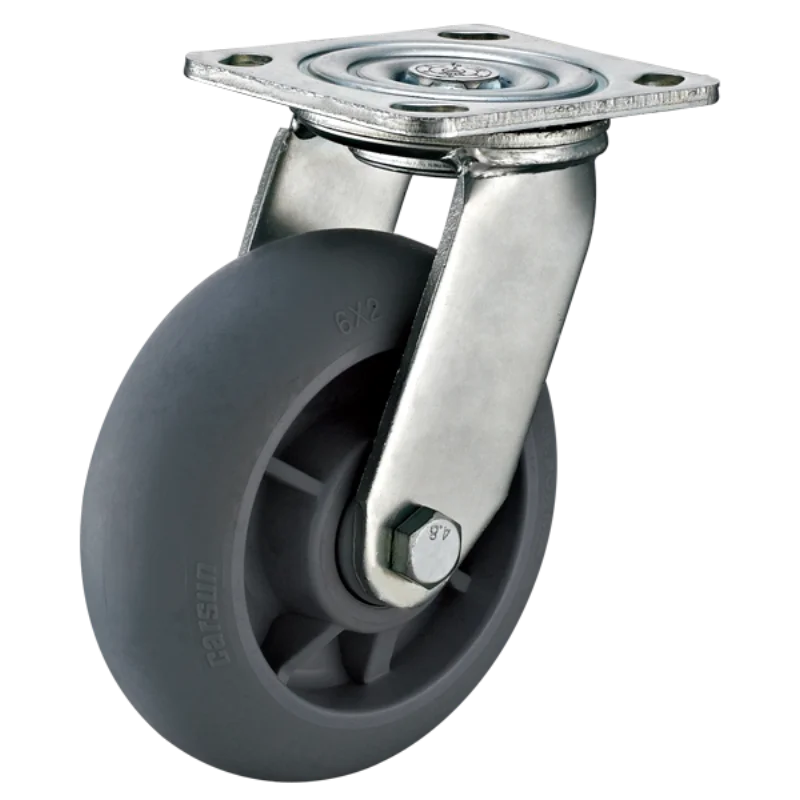 4 variants| Quote | Product Code | Wheel Dia. (mm) | Wheel Width (mm) | Load Cap. (kg) | Swivel Offset (mm) | Bracket (mm) | Height (mm) | Top Plate (mm) | Bolt Spacing (mm) | Bolt Hole (mm) |